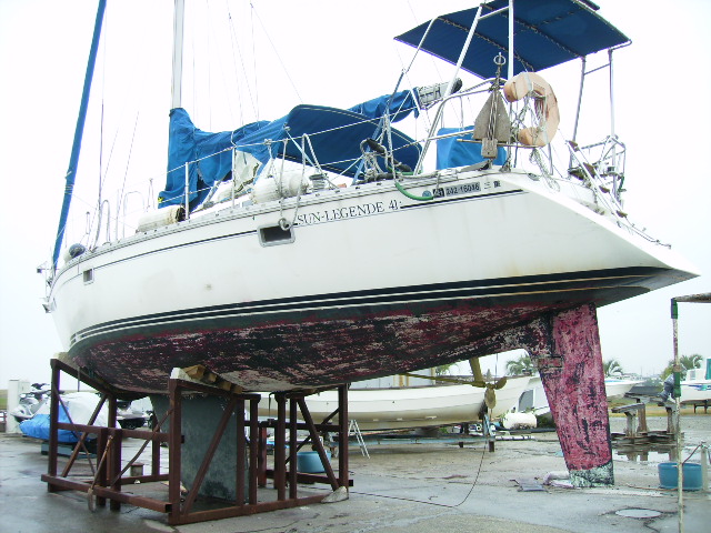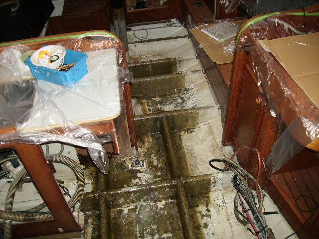 不能になりました。曳航してもらい、係留地にてしらべたら、各気筒クーラントだらけ。圧力テストではヘッドガスケットの吹き抜けは見られなかったものの、熱交換器のボディー内部が腐食して排気マニホルドに流入したと思われる。