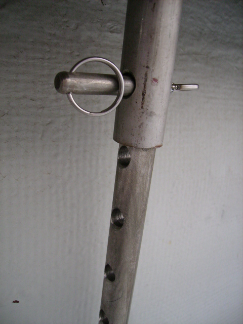 地元鍛冶屋製 簡易調整付き竿受けです。波の高さ、魚種によって高さ調整を行うとか。大漁祈願ですねー。