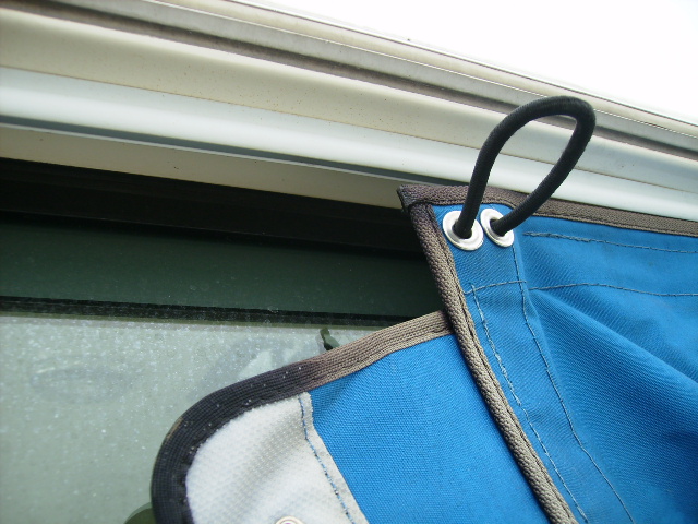 中古艇なんですが、入庫チェックしていたらウインドシールドが船倉に入っており、取りつけてみるとなんと上部がエンクロージャーみたいにレールが付いていました。溝にはめ込んで行くタイプです。
