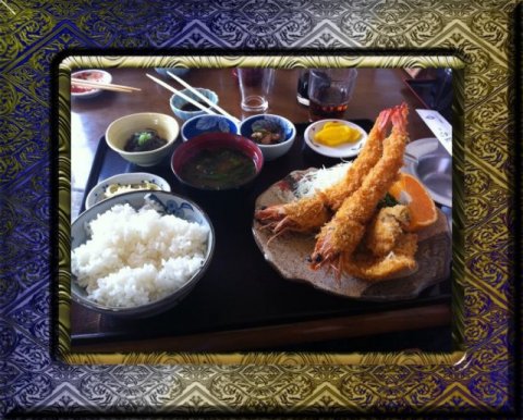 フライ定食の豪華お昼ご飯で腹一杯  (〃^¬^〃)